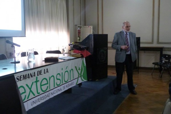 MEDIO AMBIENTE Y EXTENSIÓN: En el marco de la Semana de la Extensión, el área de Proyectos Sociales dependiente de la Secretaría de Extensión Universitaria de la U.N.R., presentó la charla “Medio Ambiente y Extensión”, una mesa de debate en donde se reflexionaron temas relacionados a los proyectos extensionistas con temática mediambiental. Entre ellos el Dr Bioquímico Héctor Ricardo Girolami presentó las particularidades del proyecto “Estudio de factores físico químicos asociados con la movilización y presencia de contaminantes de origen natural en fuentes de agua subterránea”.