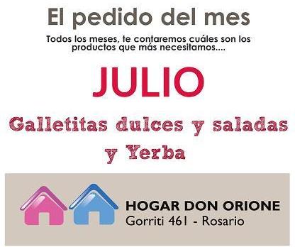 En lo que dan a llamar como “El pedido del mes” en Julio solicitan los siguientes productos: galletitas tanto dulces como saladas y yerba.