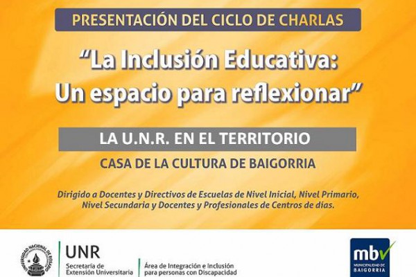 LA U.N.R. EN TERRENO: Este viernes en el Salón Mujeres del Bicentenario de la Casa de la Cultura de la ciudad de Granadero Baigorria, la Secretaría de Extensión Universitaria de la Universidad Nacional de Rosario junto al gobierno municipal oficializaron el ciclo de charlas “La educación inclusiva: un espacio para reflexionar”. Del encuentro tomaron parte el Secretario de Extensión UNR, Ingeniero Juan Manuel Medina y la Secretaria de Gobierno municipal Irma Catania quienes comentaron acerca de “la importancia de la articulación entre ambas instituciones en beneficio de la comunidad”.