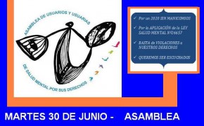 Posteo de prensa La Asamblea de usuarios y usuarias de salud mental por sus derechos Rosario se reúne este martes 30 de junio a las 15 HS en la Facultad de Psicología (Riobamba y Berutti) de la Universidad Nacional de Rosario...