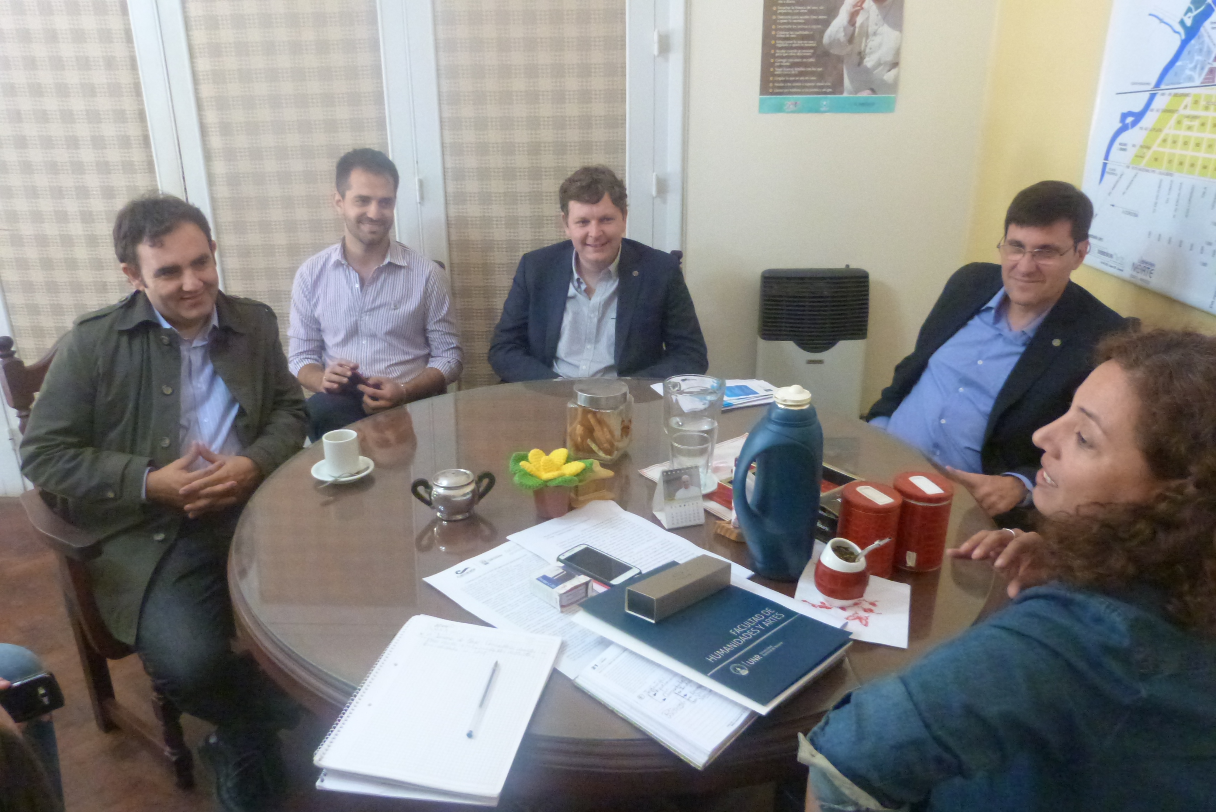 UNIVERISDAD, MUNICIPIOS Y COMUNAS: Autoridades de la Universidad Nacional de Rosario, encabezadas por el Secretario General, Licenciado Mariano Balla; el Decano de la Facultad de Humanidades y Artes, Prof. José Goity y el Secretario de Extensión Universitaria, Ing. Juan Manuel Medina se reunieron con la intendenta de la localidad de Carcarañá, Verónica Schuager con la finalidad de “profundizar la política universitaria de trabajo en común con municipios de la región aprovechando en esta nueva etapa toda la experiencia acumulada con la intensión de brindar un salto de calidad institucional a lo que la Universidad hace en la localidad” expresó Mariano Balla.