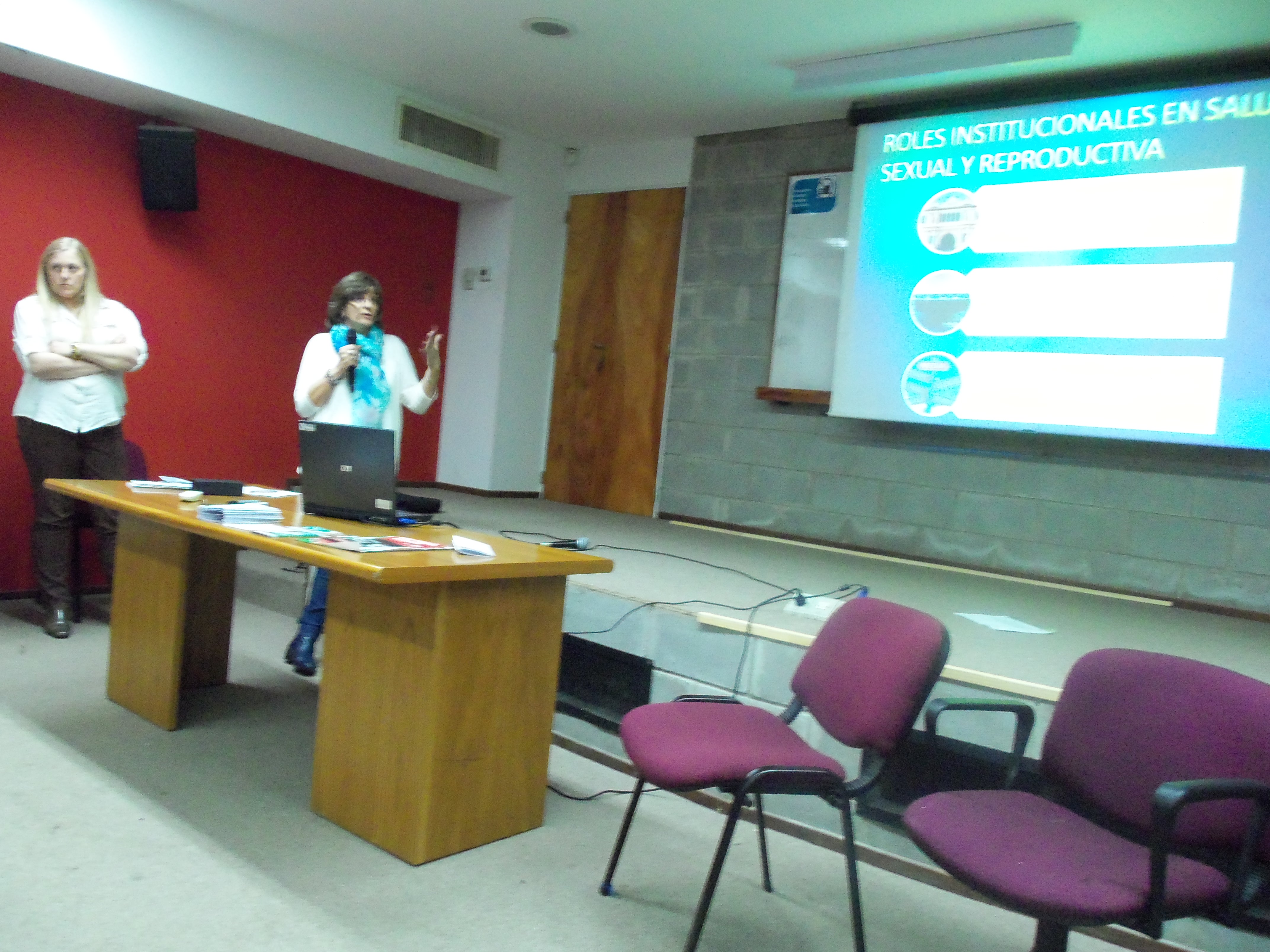 EL PAPEL DEL FARMACÉUTICO: Para terminar la charla, y nutridos de una gran cantidad de información concientizadora, los asistentes escucharon con atención a las Farmacéuticas Laura Grilli y Patricia Buszniez, encargadas de la Farmacia del Hospital Centenario.