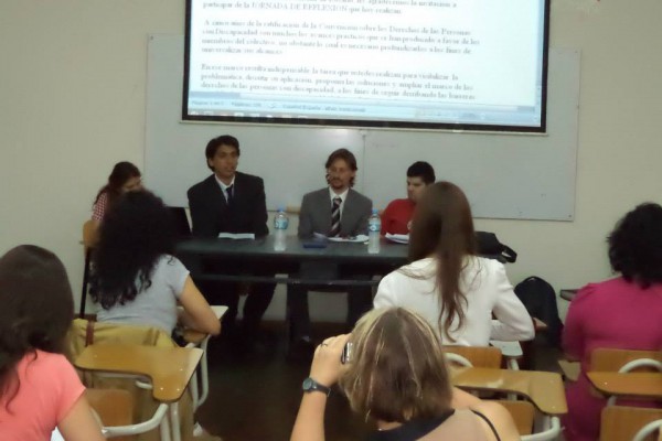 La misma estuvo conformada por dos paneles: en primer lugar, “La Discapacidad y el Derecho”, a cargo del Dr. Nicolás Gianelloni, Secretario de Extensión de la Facultad de Derecho, el Dr. Sebastián Rositto, Coordinador del Área Discapacidad y DDHH y Asesor Permanente de la CUD-U.N.R. y el Sr. Ezequiel Falletti, Representante de la Facultad de Derecho ante la CUD-U.N.R.; y en segundo lugar:“La Discapacidad, la Universidad Nacional de Rosario y las ONG”, cargo de la Lic. Psp. Natalia Pieroni, Coordinadora del Área de Integración e Inclusión para Personas con Discapacidad, dependiente de la Secretaría de Extensión Universitaria y Coordinadora de la Comisión Universitaria de Discapacidad (CUD)-U.N.R., Dr. Alejandro Palermo Romera, Pte. de la Comisión de Derecho de la Discapacidad del Colegio de Abogados de Rosario y el Prof. Guido Maranzana, Tesorero del Movimiento de Unidad de Ciegos y Ambliopes de Rosario-MUCAR.