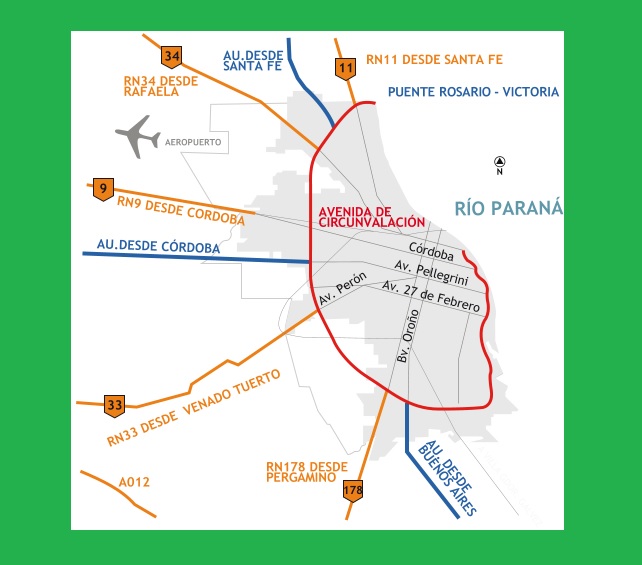 – Desde el Norte por Ruta 11, Ruta 34 y Autopista Rosario- Santa Fe.