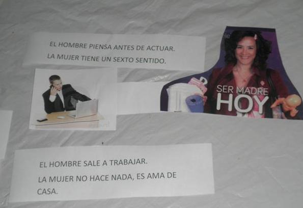 Posteriormente se trabajó en base a las siguientes consignas: Teniendo en cuenta cada par de imagen y frase, se les preguntó ¿Qué rol o estereotipo de género se le asigna al hombre y cuál a la mujer?, y retomando lo visto en la actividad anterior, se les consultaba si esos roles, ¿tienen que ver con la asignación por género o por sexo?, ¿A cuál de los dos roles la sociedad le da más valor?, y si ¿Pueden generar algún tipo de discriminación? (…). “En el trabajo se llega a las conclusión que los roles y características que se les asignan a las mujeres son menos valorados que los que se les asignan a los hombres y que por lo tanto esto genera discriminación en base a género. Lo que deriva en que las mujeres no tengan el mismo acceso al ejercicio de los derechos que los hombres y en distintos tipos de violencia contra las mujeres” analizaron integrantes del equipo de trabajo de la propuesta extensionista.