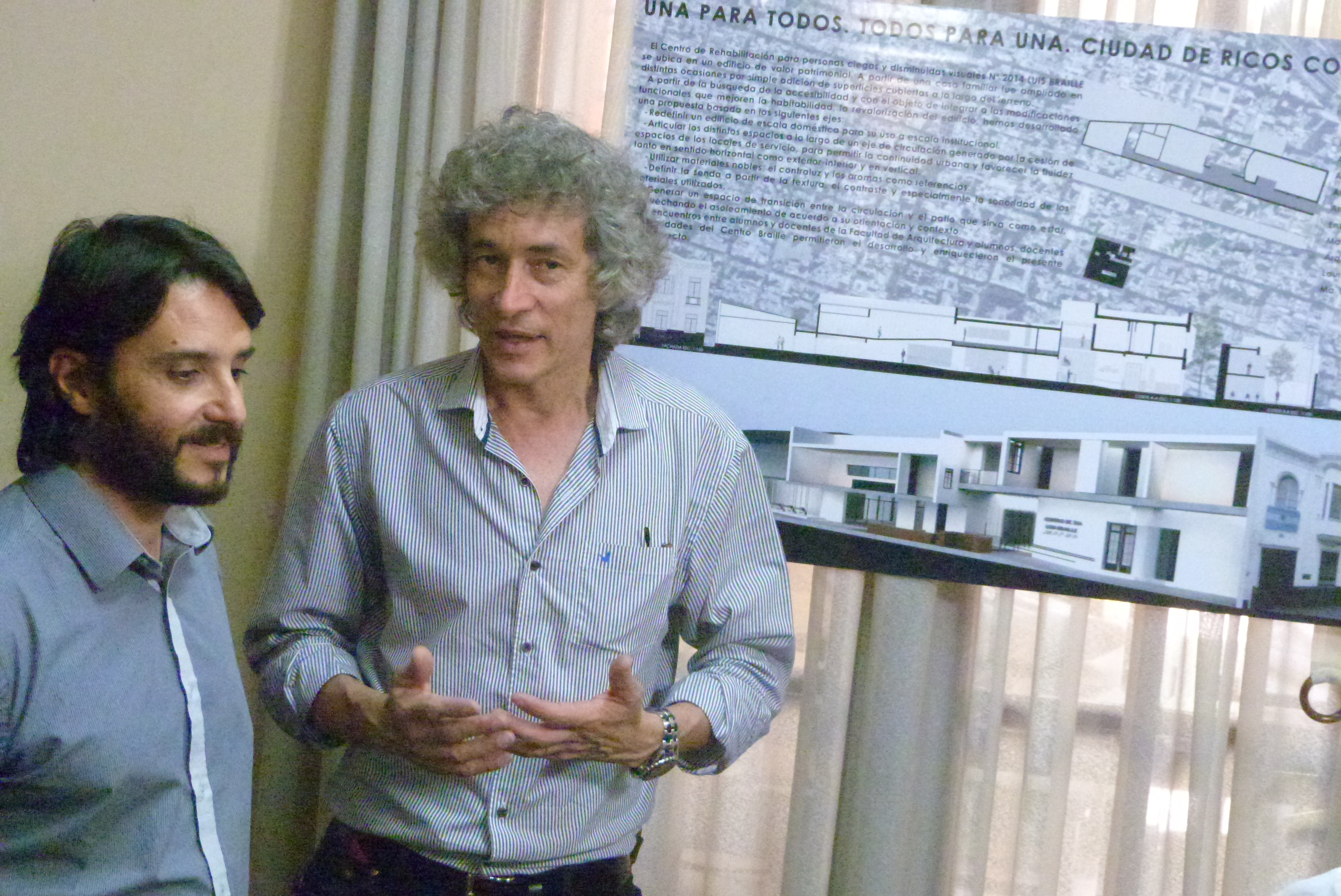 La presentación del Proyecto de Extensión de la Facultad de Arquitectura dirigido por el docente Juan Alegre que propuso elaborar un proyecto que solucione las barreras arquitectónicas del edificio del Centro Luis Braille para todos los alumnos con discapacidad visual que allí concurren fue el lugar en donde el Secretario de Extensión Universitaria, Ingeniero Juan Manuel Medina vertió algunas consideraciones de la esta función del sistema universitario. “Creemos que la Extensión va camino a la integralidad de las disciplinas claramente y este proyecto abarca mucho más allá de la disciplina de la arquitectura y hoy las complejidades que tenemos en la sociedad solicitan nuevos compromisos de la Universidad” apuntó Medina en el comienzo de su discurso luego de elogiar el trabajo de los estudiantes de la faculta de arquitectura guiados por los docentes Alegre, Bello y Altuzarra.