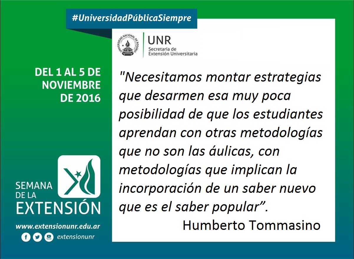 Añadiendo a esta cuestión de la formación de los estudiantes, Tonmasino reflexionó que “estamos aprendiendo solo o casi exclusivamente lo que nos da el saber académico, no tenemos discusión con el saber popular”. Destacando la necesidad de montar estrategias “que desarmen esa muy poca posibilidad de que los estudiantes aprendan con otras metodologías que no son las áulicas, con metodologías que implican la incorporación de un saber nuevo que es el saber popular”. Pero aclarando considerar este saber no como algo pacífico, sino hablando del diálogo de saberes, de la mutua interpelación crítica y la posibilidad de poder discutir los saberes.