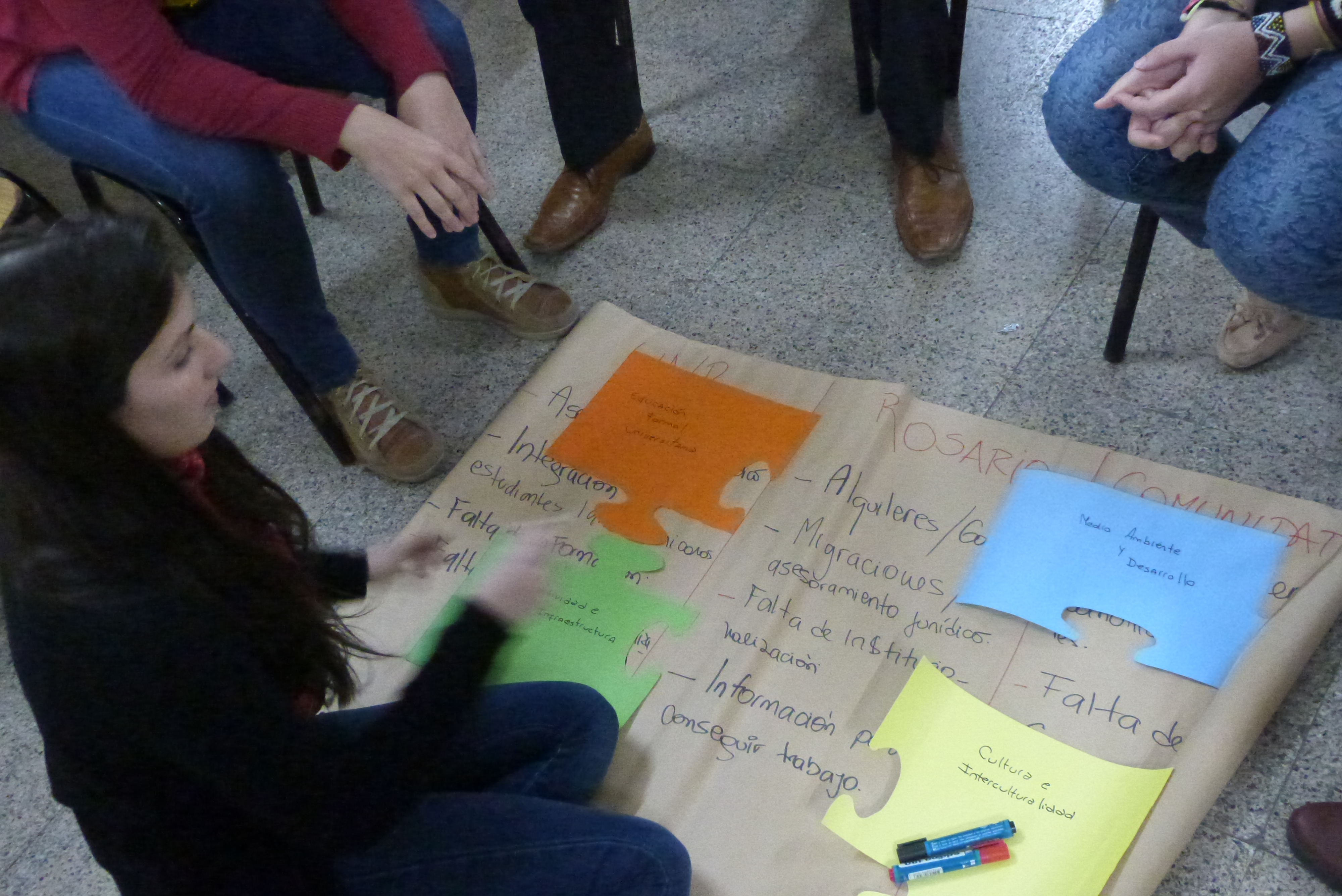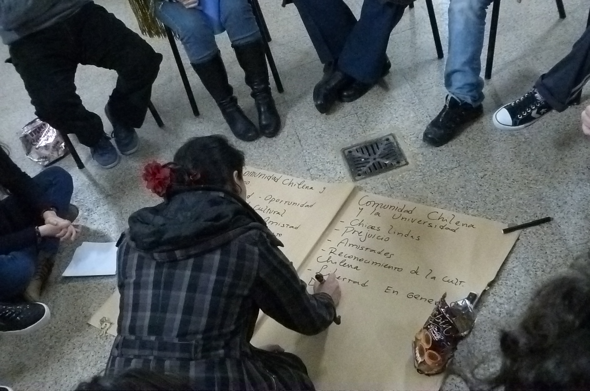 La primera actividad lúdica que planteó el encuentro, luego de ejercicios de presentación de los integrantes, fue analizar de qué manera la comunidad chilena se relaciona con la Universidad Nacional de Rosario; con otras comunidades que se encuentran en la región y con la ciudad propiamente dicha.