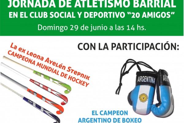 En la Jornada Atlética Barrial estarán presentes dos referentes del deporte en la ciudad de Rosario, la ex leona Ayelén Stepnik, campeona mundial de hockey sobre césped y el campeón argentino de boxeo Matías Vidondo quienes brindarán una charla sobre la importancia del deporte y la actividad física para una vida saludable.
