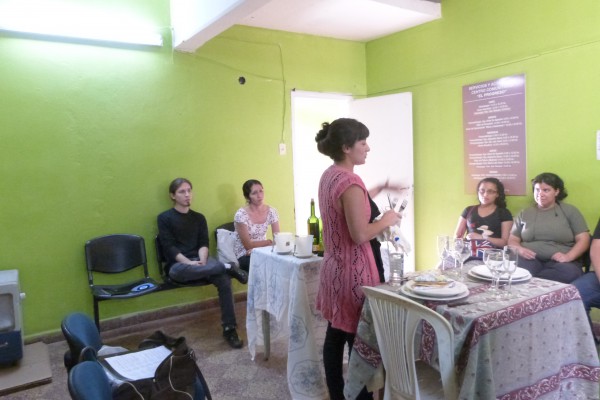 Jimena, una de las capacitadoras e integrante del equipo extensionista, arma la mesa mientras espera a los primeros participantes del taller, quienes poco a poco y tímidamente van llegando. Ella los recibe, los saluda con un beso, los llama por su nombre y les pregunta como andan, cómo va la búsqueda de trabajo, si corrigieron el CV, si los enviaron, a qué lugares. Jimena ya está recibida de psicóloga. Pero durante toda su carrera tuvo que trabajar, fue camarera y ayudante de cocina -cuándo se cansaba de la atención al público, se refugiaba en la cocina-, nos cuenta.