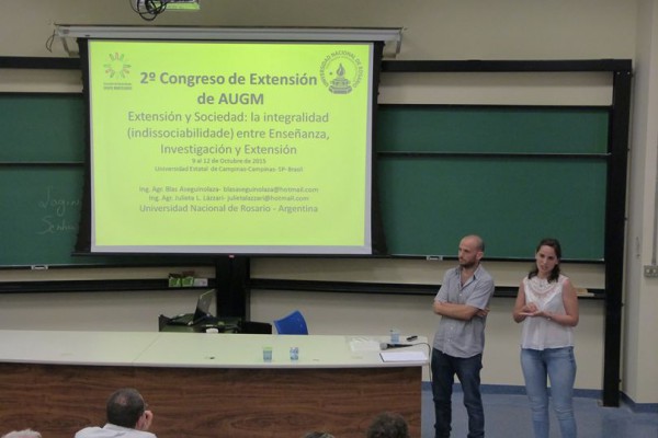 La Secretaría de Extensión Universitaria de la UNR, a través de la participación de Julieta Lázzari y Blas Aseguinolaza, ambos ingenieros agrónomos e integrantes dentro Área de la Unidad de Vinculación con el Sector Agropecuario de la SEU-UNR fue invitada tomar parte de este espacio de debate extensionista en la temática del Medio Ambiente denomina: “Medio Ambiente y comunidad académica: lo que la Extensión Universitaria realmente hace o debe hacer”. En esta oportunidad coordinado por el docente Sandro Tonso de UNICAMP y compartiendo lugar junto a otra experiencia Argentina de la UNL dirigida por el docente Enrique Mihura.