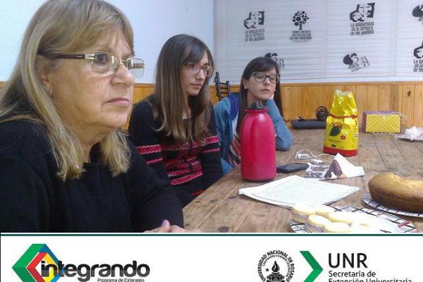 EXTENSIÓN – DERECHOS Y LEYES: TALLER DEL PROGRAMA INTEGRANDO “Atención integral de la violencia familiar en los barrios: saldando una deuda pendiente” que responde al trabajo de integralidad entre las facultades de Derecho, Ciencia Política y RR.II y Psicología, viene realizando una serie de talleres en comunidades del Distrito Oeste de la ciudad de Rosario como parte de una de las etapas de su trabajo. En esta oportunidad se llevó a cabo otro de los encuentros entre mujeres que sirven como espacio de reunión en la Vecinal Belgrano Oeste, calle Perú 1856.