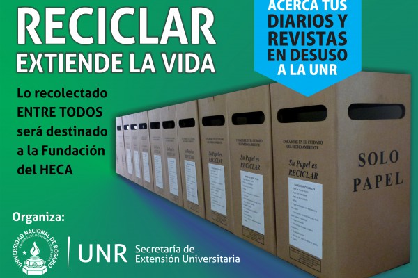 SOLIDARIDAD Y CONCIENTIZACIÓN: Continúa el éxito de la campaña “Reciclar extiende la vida”, en el mes de junio se recolectó 750kg entre papeles y cartón en desuso gracias a la participación activa de la comunidad luego de la intervención callejera de la Secretaría de Extensión Universitaria (SEU). Lo reunido es a beneficio de la Fundación del HECA.