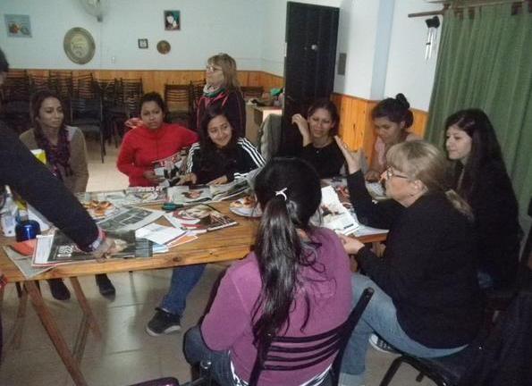 En el taller realizado el sábado 9 de mayo la actividad consistió en trabajar con recortes de diarios, revistas y/o folletos publicidades dirigidos a las mujeres y varones. Luego las participantes al encuentro pegaron en un afiche estas muestras y analizaron por qué creen que las publicidades se dirigen a los varones y no a las mujeres y viceversa.