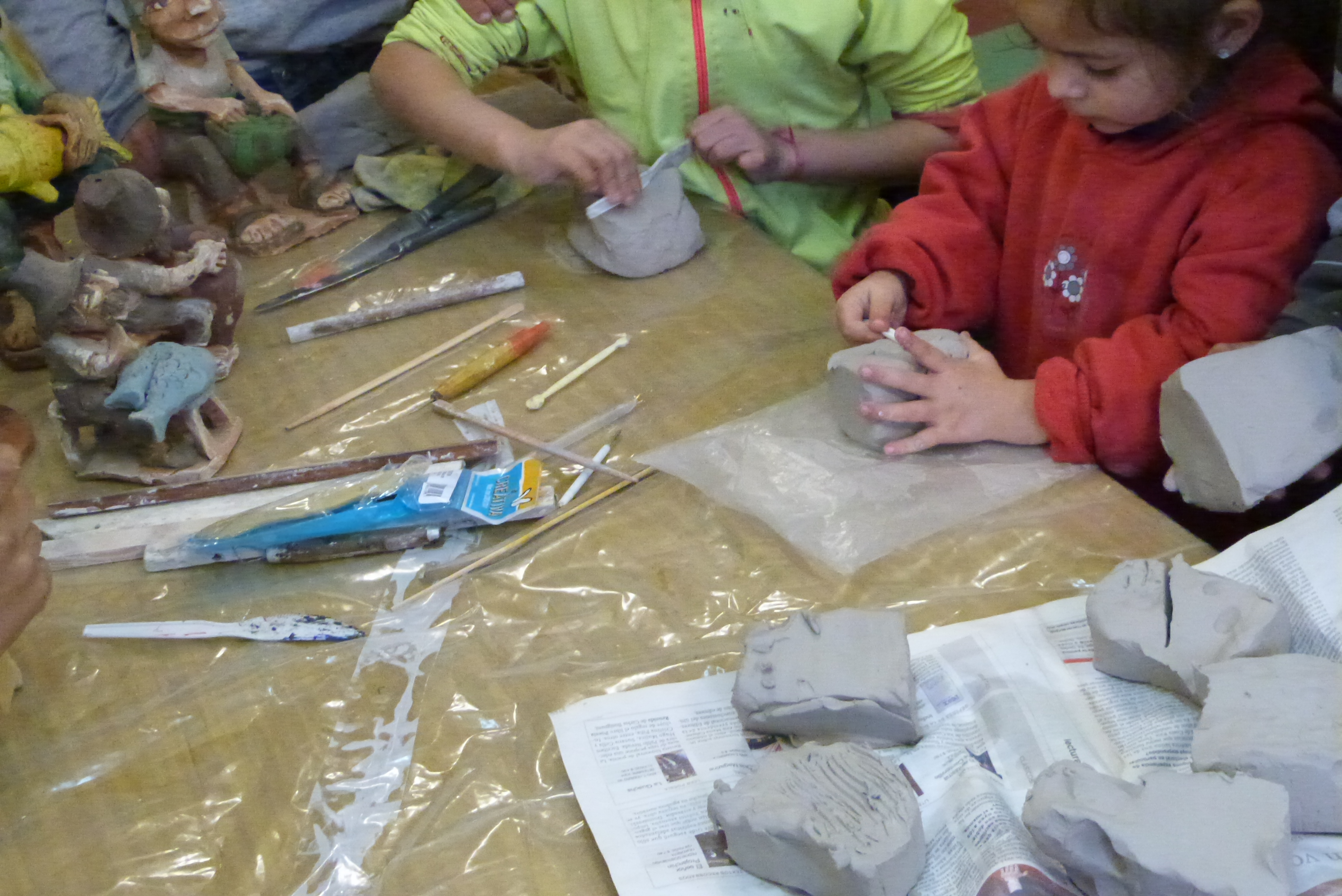 A pesar de la lluvia, un puñado de chicos se acercó al lugar para moldear sus primeros objetos en arcilla. Camila llegó temprano junto a su madre y se mantuvo callada, algo que cambió al momento de poner sus manos en ese masacote blando de barro y agua, armaba y desarmarba y finalmente quedó muy contenta porque era “la primera vez que hacía la escultura de una persona”; por su parte Demian hizo un hornero. “Me gustó hacer la casa del pajarito” dijo el pequeño de 7 años quien reconoció que parte de su creación fue “copia de lo que hizo el maestro”.