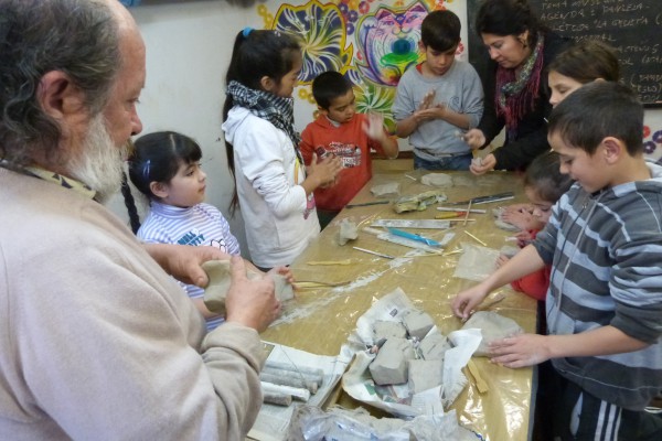 Fue un taller de cerámica “libre e informal”, esos fueron los requisitos del artista ya que remarcó que sus motivaciones eran “transmitir pautas de mi experiencia sin enseñar nada”. El “Taller de Arte y Compromiso social” reunió a niños y niñas del espacio de educación no formal de Apoyo Escolar de la biblioteca y del Taller de Arte = Vida para Todos que se realiza en el Centro Cultural de la UNR, que depende de la SEU. “Para mi tanto la cerámica como la pintura tiene un alto grado de compromiso social aún en las cosas más simples” marcó el artista que hace 40 años entrega parte de su vida a esta pasión. “Es un verdadero homenaje al trabajo del hombre, a su alegría y sus tristezas y es ahí en donde creo en el compromiso de transmitir la vida más simple de la sociedad latinoamericana y el mundo. La sociedad le da poco valor al hombre y creo que lo que hago es un monumento a las cosas más simples de la vida” resume.