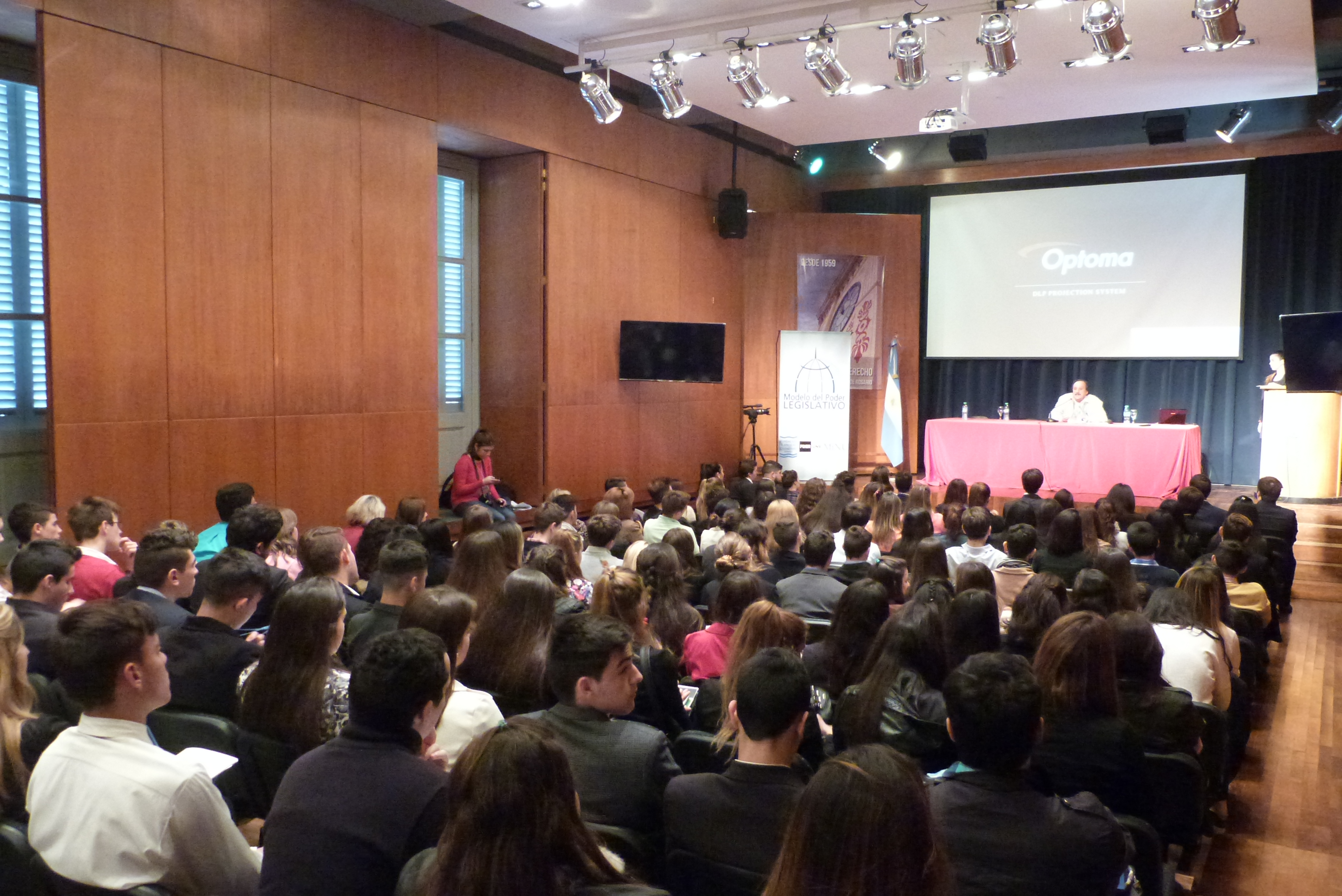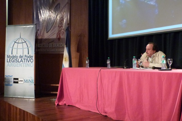 Luego de la ceremonia de apertura del 2º Modelo de Poder Legislativo Argentino en la Facultad de Derecho, tuvo lugar la charla de Humberto Tommasino, uno de los referentes latinoamericanos de la extensión universitaria quien con la claridad que le caracteriza pintó una analogía concreta entre la teoría extensionista y la práctica de este proyecto de la Universidad Nacional de Rosario (UNR) y financiado en la 8º convocatoria de la Secretaría de Extensión Universitaria (SEU).