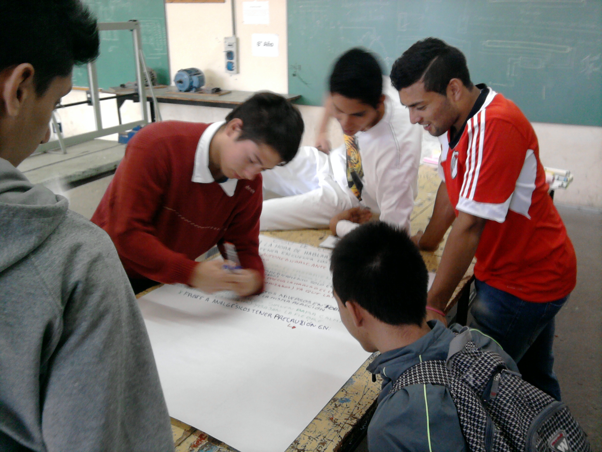 La otra dinámica utilizada fue presentar a los estudiantes distintos situaciones problema. Estas actuaron como disparadores para reconocer y debatir sobre los puntos claves del taller, discusión que fue guiada y estimulada por el promotor responsable de cada grupo.